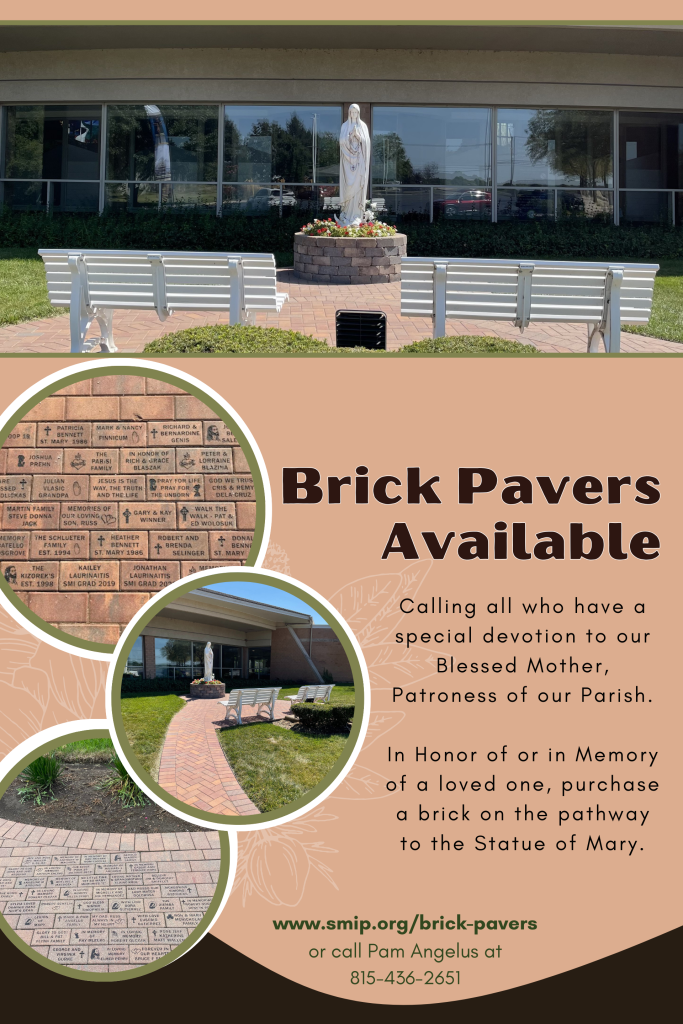 SMI is offering for sale bricks at the statue of Mary the north side of the main church doors. A great gift idea for First Communions and Graduations! What a beautiful way to remember a special occasion for someone! If you are interested, please download, print, and fill out the form below and return it to the Parish Office. Copies of the form can also be picked up in the Commons.